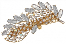 ТЕ 655797 Заколка автомат "Два белых листочка в золоте". Длина 9 см. Металл