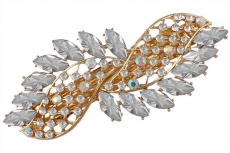 ТЕ 655802 Заколка автомат "Две белых волны в золоте". Длина 9 см. Металл