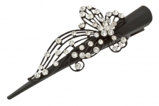 938573539 Зажим черный Бабочка со стразами металл.большой 13 см.