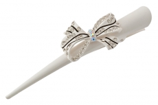 938997036 Зажим белый Бантик со стразами металл.большой 13 см.