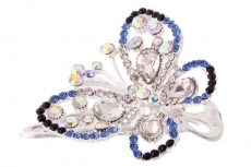 ТЕ 213180 Зажим вечерний "Бабочка синяя в стразах в серебре" Длина 5 см. Металл