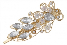 ТЕ 655440 Зажим вечерний "Белый цветок в золоте". Длина 11 см. Металл