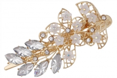 ТЕ 655450 Зажим вечерний "Белые цветы в золоте". Длина 11 см. Металл