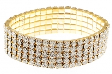 906330092 Браслет "Золотые стразы в 5 рядов на резинке" Металл. Ширина 1,8 см.