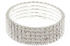 906330098 Браслет "Серебрянные стразы в 5 рядов на резинке" Металл. Ширина 1,8 см.