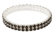 906644035 Браслет "Черные стразы в 2 ряда на резинке" Металл. Ширина 0,7 см.