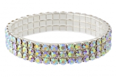 906758230 Браслет "Перламутроые стразы в 3 ряда на резинке" Металл. Ширина 1 см.