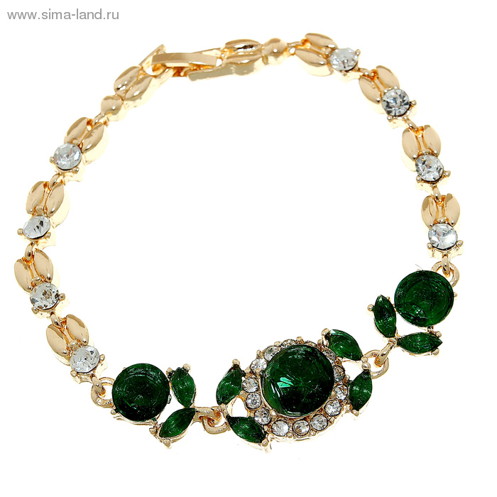 982472 Браслет вечерний "Цветок зеленый в золоте" металл