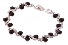 ТЕ 064410 Браслет вечерний "Черные камни в серебре" металлический узкий