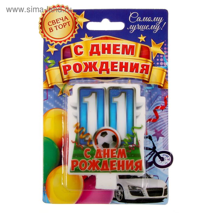1394625 Свеча для торта "Цифра 11.С Днем рождения" для мальчиков