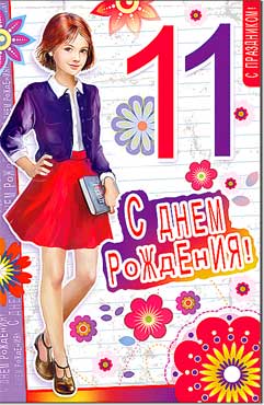 23-3754-ТК Открытка "11 лет.Девочка с книжкой" Формат А5
