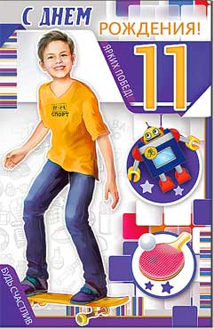 23-3762-ТК Открытка "11 лет.Мальчик на скейте" Формат А5