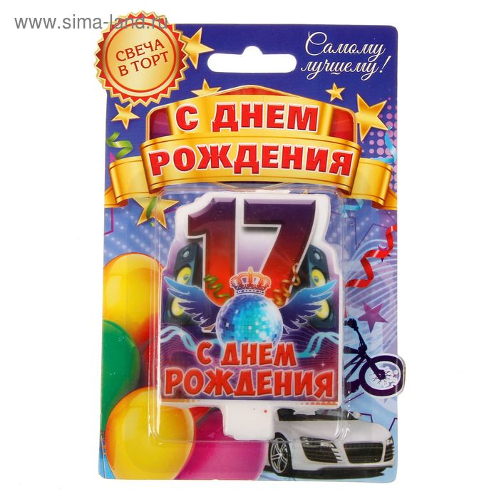 1394631 Свеча для торта "Цифра 17.С Днем рождения" для мальчиков