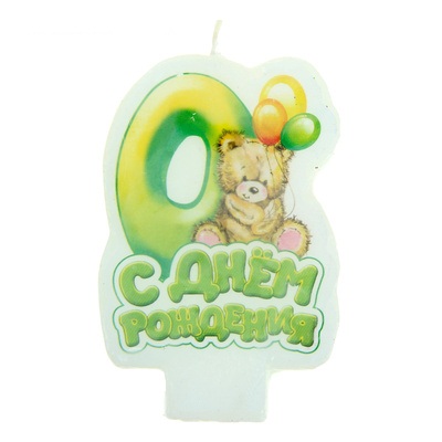 1003761 Свеча в торт "Цифра 0.С Днем рождения.Мишка с шариками"