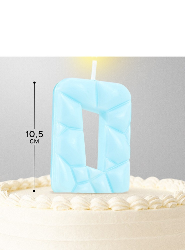 10603319 Свеча в торт "Цифра 0. Голубая" на шпажке. Высота 5 см.