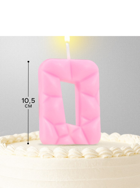10603331 Свеча в торт "Цифра 0 Розовая" на шпажке. Высота 5 см.