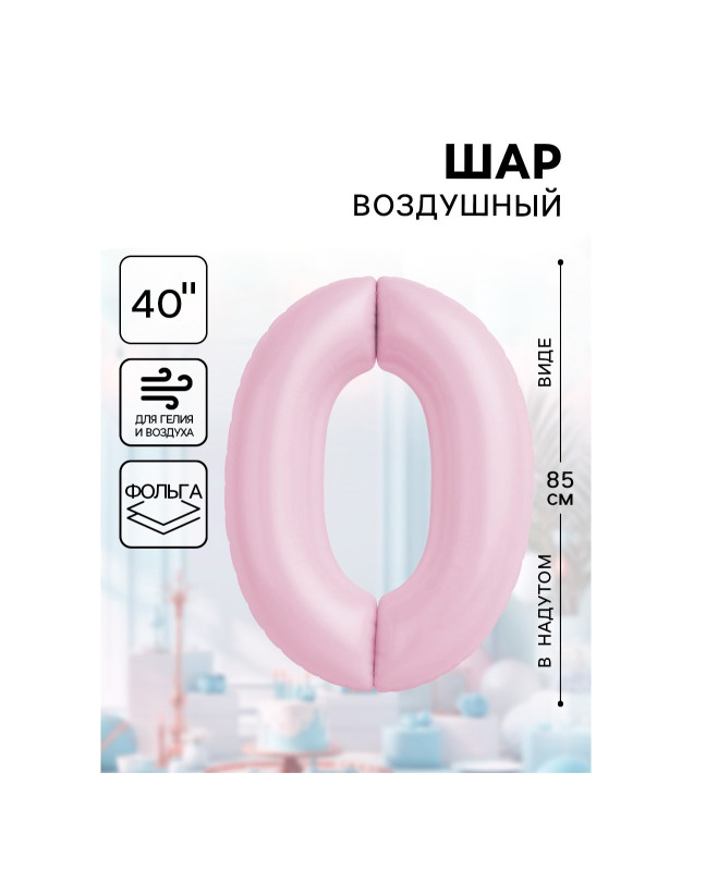 10930093 (АГ 942053) Зефирно розовая Slim фольгированная "Цифра 0" Высота 85 см.