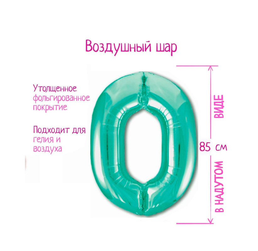 7114798 Бирюзовая (Тиффани) фольгированная "Цифра 0" Высота 85 см.