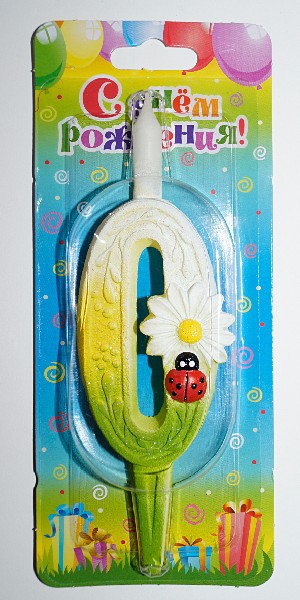 1462555 (БР 3060) Свеча для торта "Цифра 0. Ромашка с божьей коровкой"