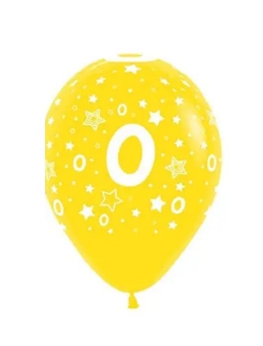SE 612100/5 Желтый 5-сторонний шарик "Цифра 0: Звезды" D 30 см. (с гелием)