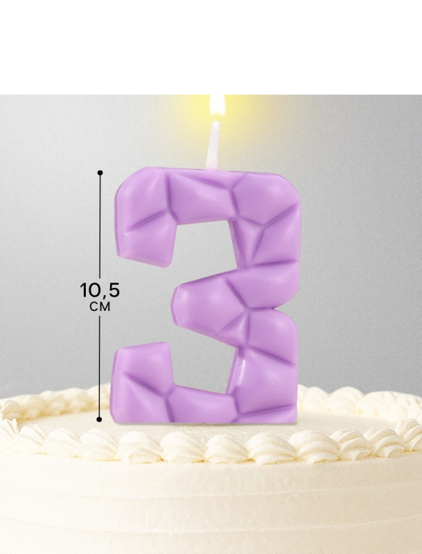 10603312 Свеча в торт "Цифра 3 Сиреневая" на шпажке Высота 5 см.