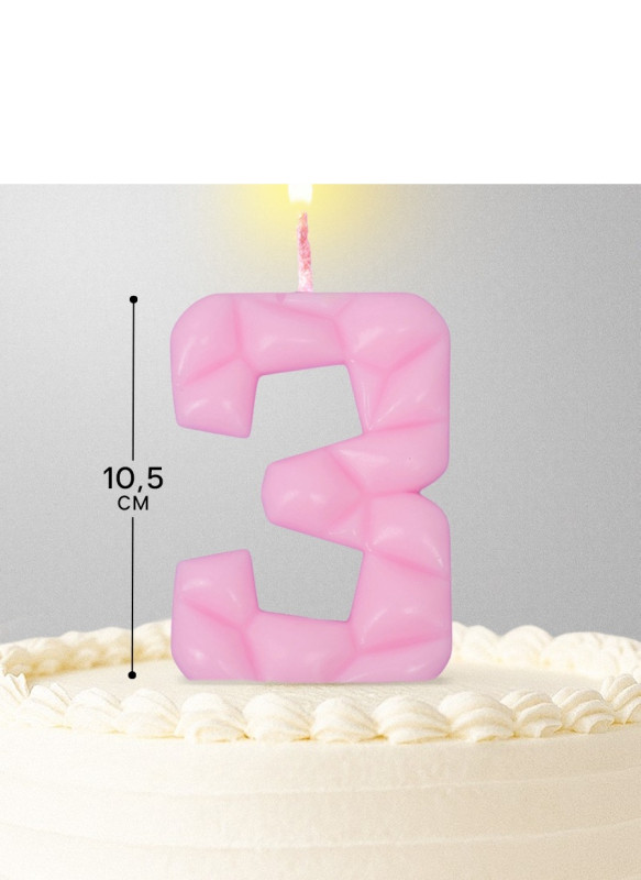 10603334 Свеча в торт "Цифра 3 Розовая" на шпажке Высота 5 см.