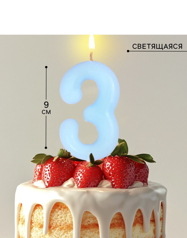 10717226 Свеча в торт "Цифра 3. Голубая" на шпажке. Высота 5,5 см.
