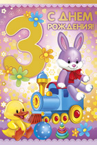 13.112.00 Открытка "3 годика.Зайчик на паровозике" Формат А5