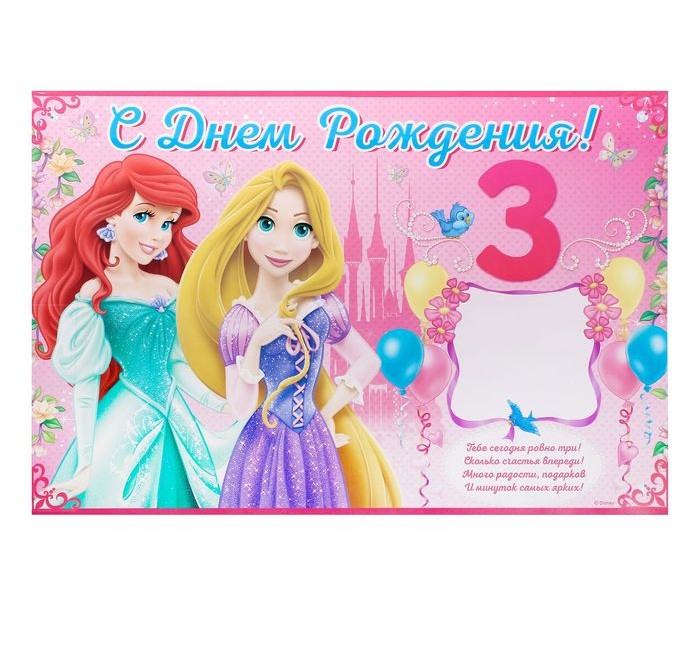 1395750 Плакат мягкий " 3 года! С Днем рождения.Принцессы" Размер 60 x 40 см.