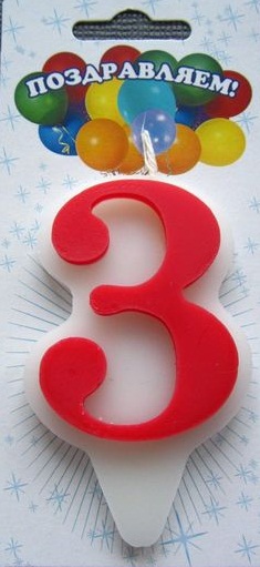 1623595 Свеча в торт "Цифра 3.Красная волна на белом"