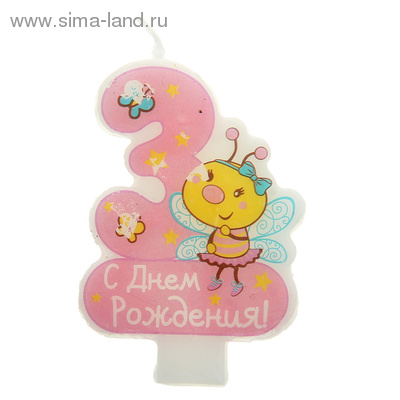 233028 Свеча для торта "Цифра 3.С Днем рождения" Пчелка