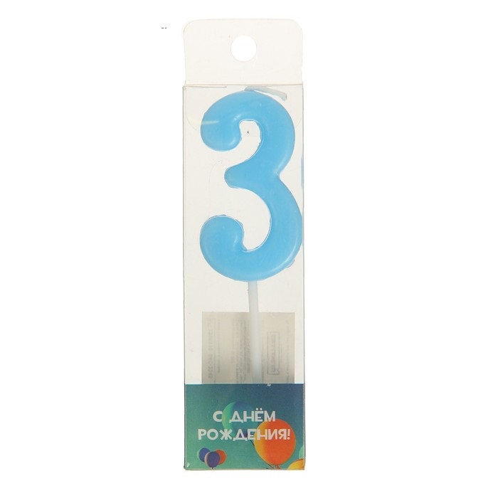 2385810 Свеча в торт "Цифра 3.Голубая" на палочке. Высота свечи 4,5 см.