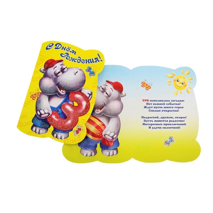 787139 Открытка "3 годика.Бегемотик" Формат А5