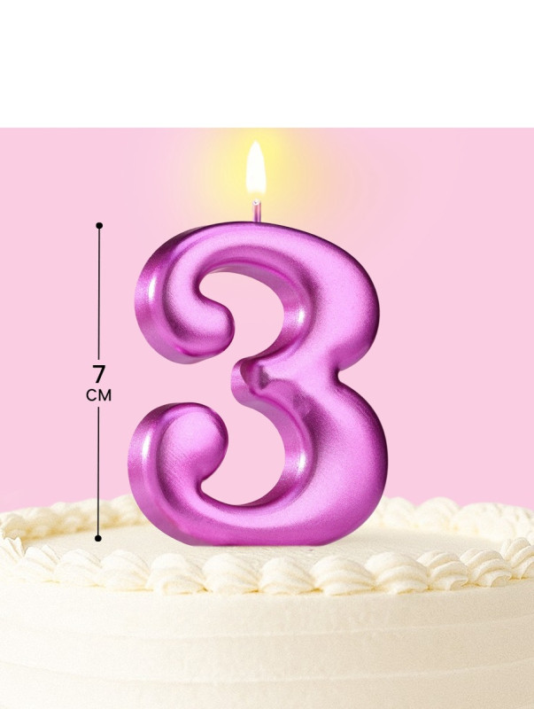 9943346 Свеча в торт "Цифра 3 Фиолетовый металлик" Высота 6.5 см.