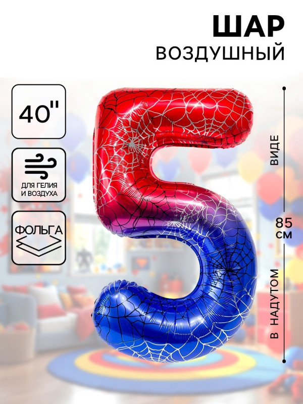 10919689 (ДБ 26975) Фольгированная "Цифра 5.Паутина" Высота 102 см.