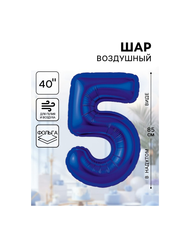 10930085 (АГ 941261) Темно синяя Slim фольгированная "Цифра 5" Высота 85 см.