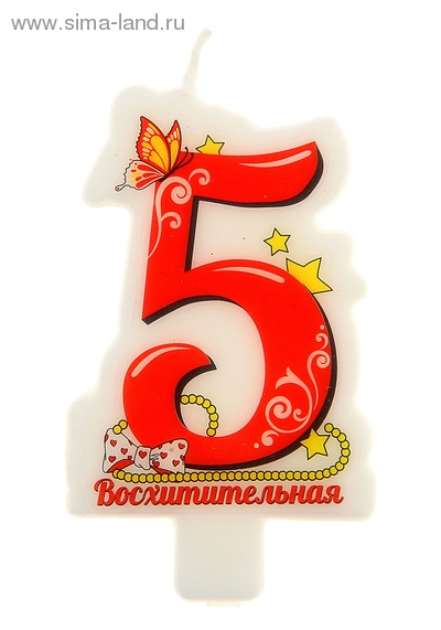 121632 Свеча для торта "Цифра 5. Восхитительная". Красная