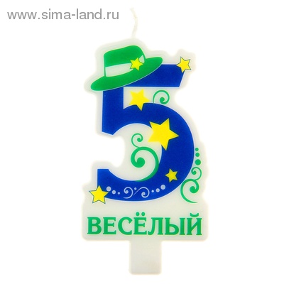 121642 Свеча для торта "Цифра 5. Веселый". Синяя