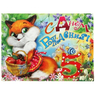 1263277 Открытка объемная "5 лет! Лиса с корзинкой" Формат А4