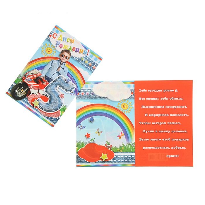 1350983 Открытка "5 лет.Мальчик на мотоцикле" Формат А5