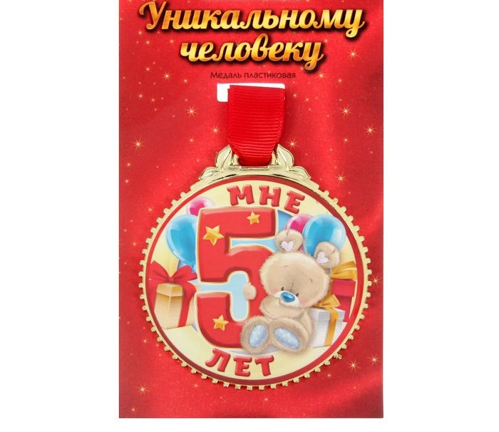 1432002 Медаль пластик на ленте "Мне 5 лет! Мишка"