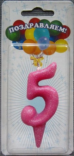 2185595 Свеча в торт "Цифра 5.Розовая с блестками"
