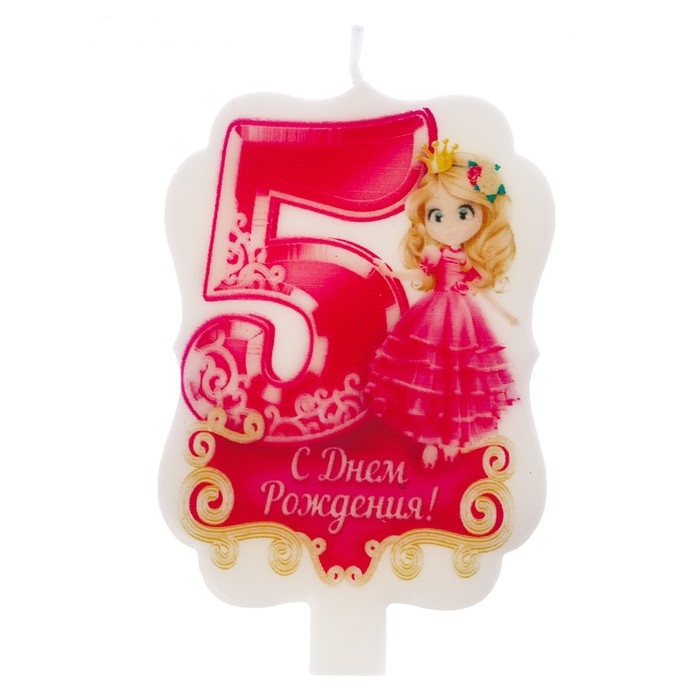 2609230 Свеча в торт "Цифра 5. С Днем рождения! Принцесса" для девочки