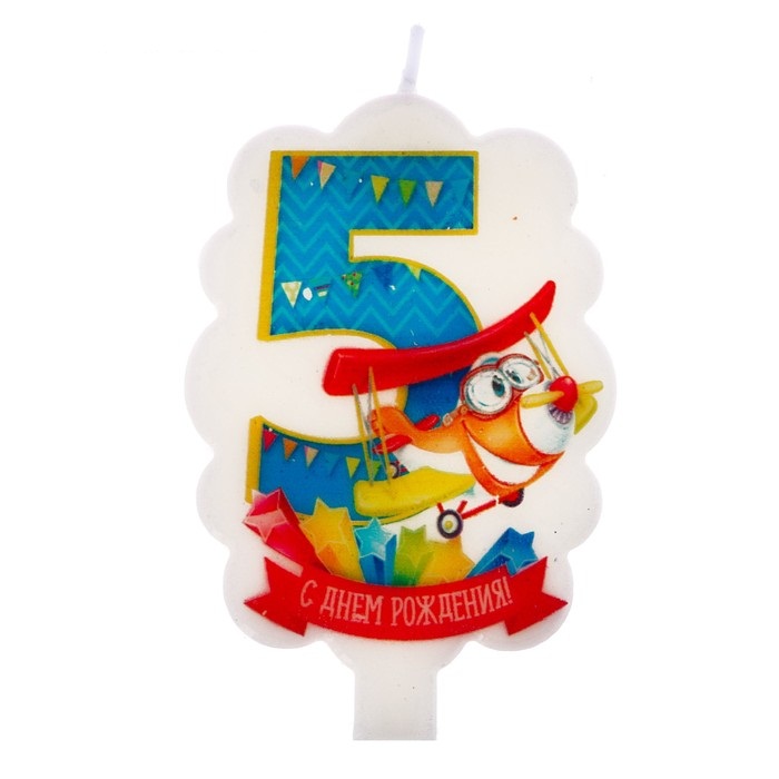 2609231 Свеча в торт "Цифра 5. С Днем рождения! Самолет" для мальчика