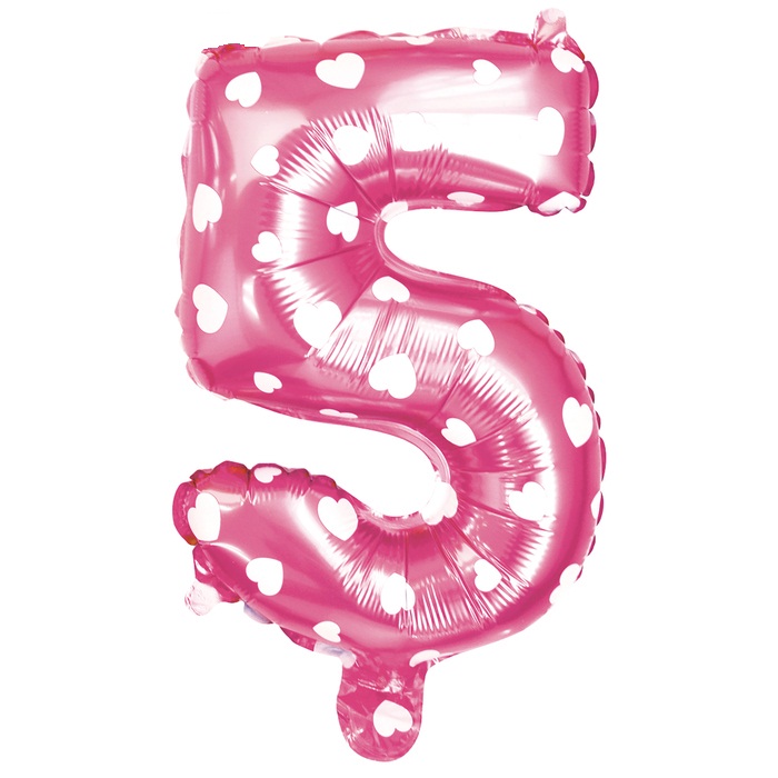 2769711 Розовая с сердечками фольгированная "Цифра 5" Высота 81 см. Китай ( под воздух)