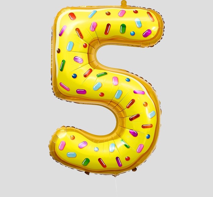 4724340 Фольгированная "Цифра 5. Пончик" Высота 85 см. Китай (с гелием)