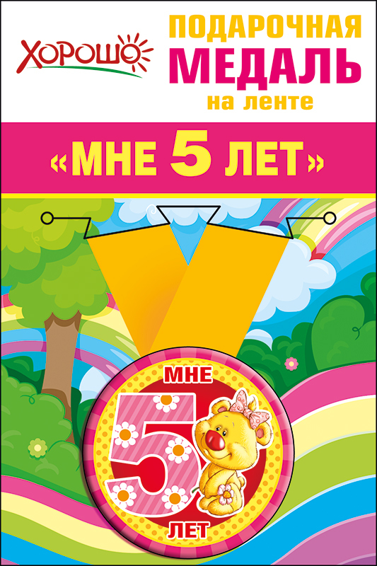 52.53.162 Медаль металл на ленте "Мне 5 лет.Мишка" для девочки