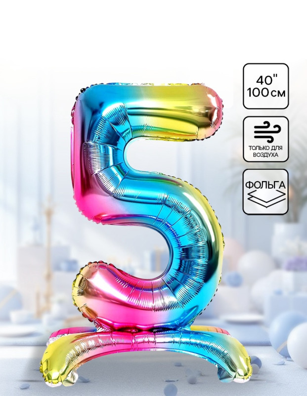 5634655 Градиент фольгированная "Цифра 5" на подставке под воздух Высота 100 см.