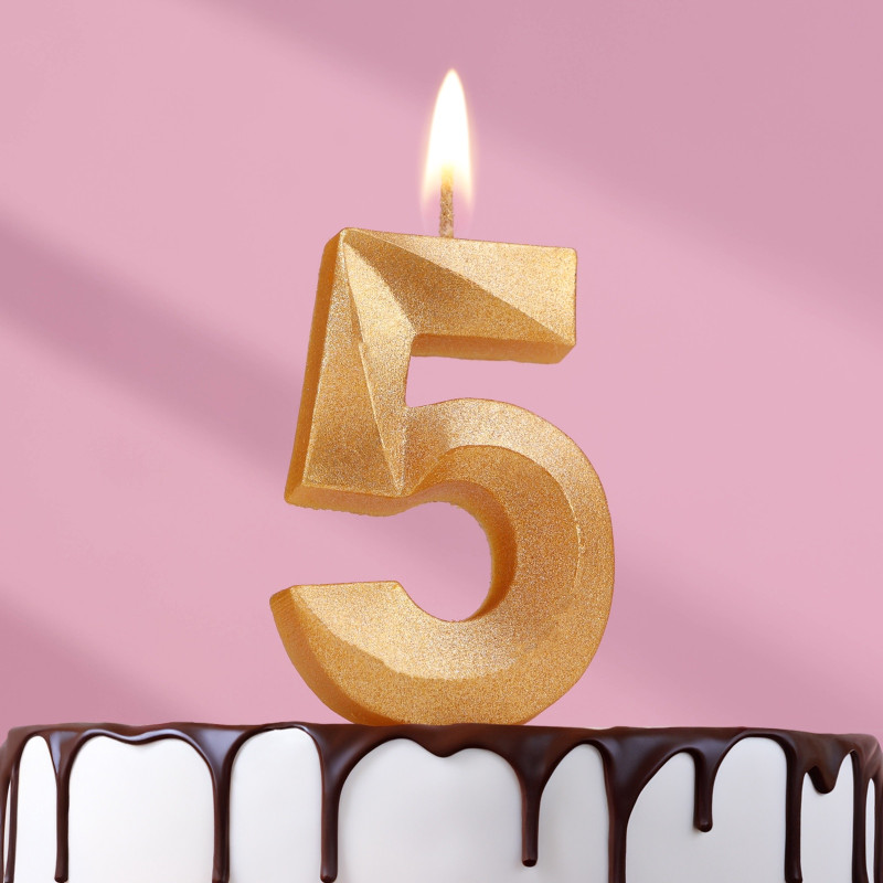 5928489 Свеча в торт "Цифра 5" Цвет золотистый металлик Высота 6,5 см.