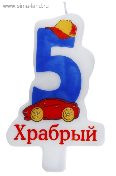 670641 Свеча для торта "Цифра 5. Храбрый". Синяя